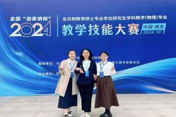 10月25日至27日,2024年全国“田家炳杯”全日制教育硕士专业学位研究生学科教学(物理)专业教学技能大赛决赛暨物理教师教育实践创新论坛在西华师范大学举办,我院三位同学在现场备课、现场模拟授课及现场答辩等比赛的各个环节中,沉着应战,展现了过硬的教学专业技能和较高的教师职业素养,获一等奖一项,优秀教学设计奖两项。朱志慧同学在众多优秀选手中脱颖而出,成功跻身18名一等奖选手之列,金毅教授获优秀指导教师荣誉称号。在此次“田家炳杯”比赛中,我校是山东省内唯一一所获得一等奖的高校,可喜可贺!