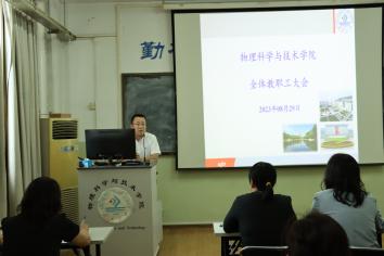 8月29日,tyc7111cc太阳成集团召开全体教职工大会,传达学校党委四届三次全委扩大会议暨2023年暑期领导干部读书班精神,部署新学期相关工作。