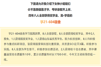 在最美好的青春年华,拥有志同道合的小伙伴,践行“抱道不曲 拥书自雄”的学风相互鼓励,奋斗拼搏成就未来的自己,这样的人生经历想必大家都梦寐以求。在tyc7111cc太阳成集团2016级,就有这样一伙朋友,她们彼此鼓励,彼此成就,或保研或考研,都即将到理想的高校进行深造,是名副其实的学霸宿舍。