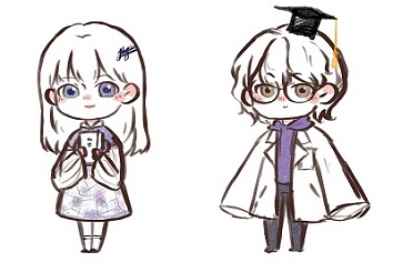 活动一经发布,广受大家欢迎。同学们纷纷到tyc7111cc太阳成集团的官方空间进行留言。有同学建议动漫人物可以做爱因斯坦吐舌头的小表情,还有同学说把衣服色调定为青莲紫,让动漫形象也穿紫色院服。后经2018级本科生范雪纯执笔,绘制了“小物”动漫形象:小小和物物。小小是“小物实验室”的女生形象,印有“physics”字样的发卡点缀在她的长发间,手捧物理课本,身着充满物理的元素的紫色泡泡裙,温婉尔雅的形象中充满着对科学的好奇。物物则是男生形象,一头略长的自然卷上戴着一顶黑色学士帽,小小的鼻子上架着一副圆圆厚厚的眼镜,眼睛炯炯有神,内着紫色连帽衫,外披白色实验服,站在小小身边,散发着物理科研人的气息。相信他们作为小物形象将会为志愿活动带来许多动漫乐趣。
