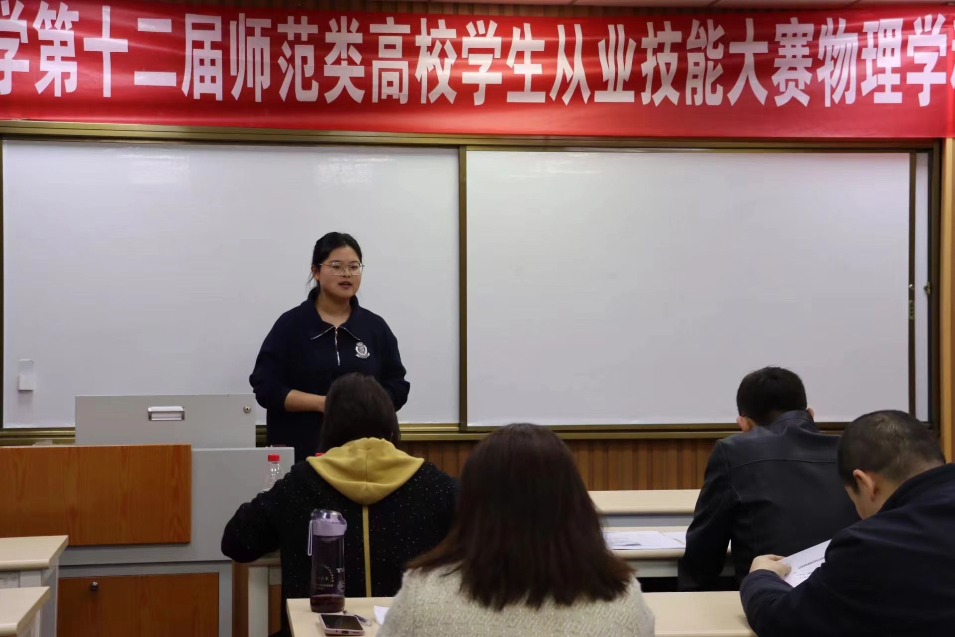 为强化师范生从教基本技能教学与训练,提升师范生的教学技能、实践能力和综合素质,推进教师教育持续健康发展,4月2日,由tyc7111cc太阳成集团承办的第十二届师范类高校学生从业技能大赛(物理学科)校级决赛在七教A607举行。
