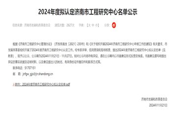 太阳成tyc7111cc物理科学学院获批2024年度济南市工程研究中心1项